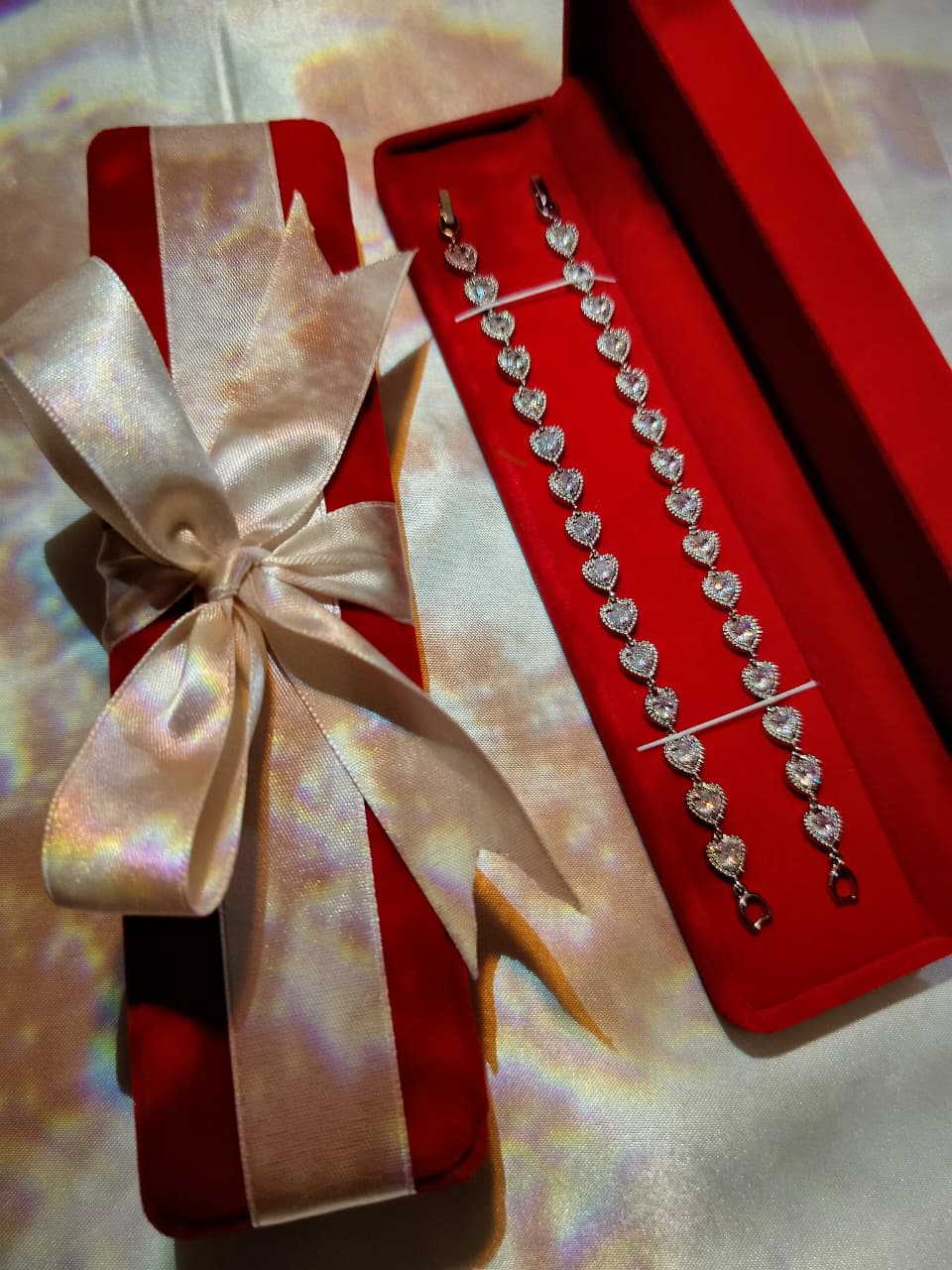 Presentación de Lujo 2 Pulseras + Caja roja de Regalo Especial y lazo satinado, lista para regalar.